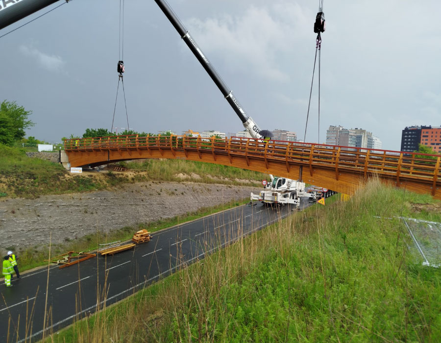 Obras de construcción de accesos y cimentación de una pasarela peatonal sobre la vía de servicio de la carretera N-102 de conexión con las instalaciones de Ibaia, enmarcado en el Plan de Recuperación, Transformación y Resiliencia – financiado por la Unión Europea – NextGenerationEU   Promotor: Ayuntamiento de Vitoria-Gasteiz   OBRA REALIZADA EN 2025